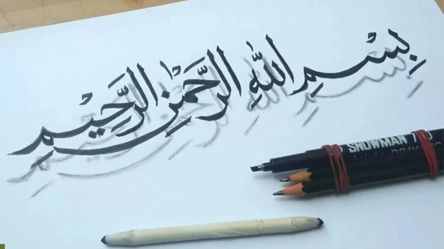 3. Membulatkan huruf “mim” (م) secara proporsional.